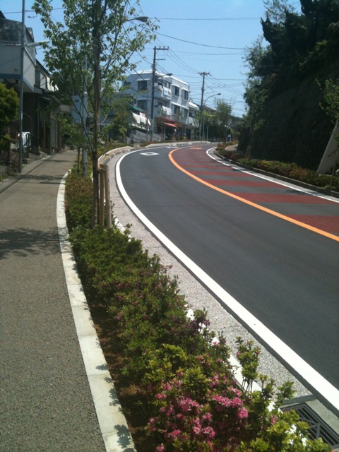 この画像ではあまりわからないかもですが、この住宅地の道も結構な角度なのです。