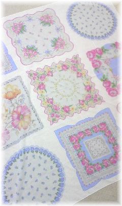 青の小薔薇柄の部分は、ハンカチとしてノベルティになっていたようです。
