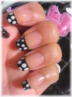 ベースがクリアで、黒フレンチに白ドット。