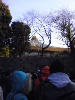 一つ目の門から長い列で、お堀沿いに並んで