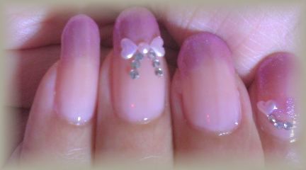 着物がパーポーなので、ピンクに紫ラメのフレンチで。
