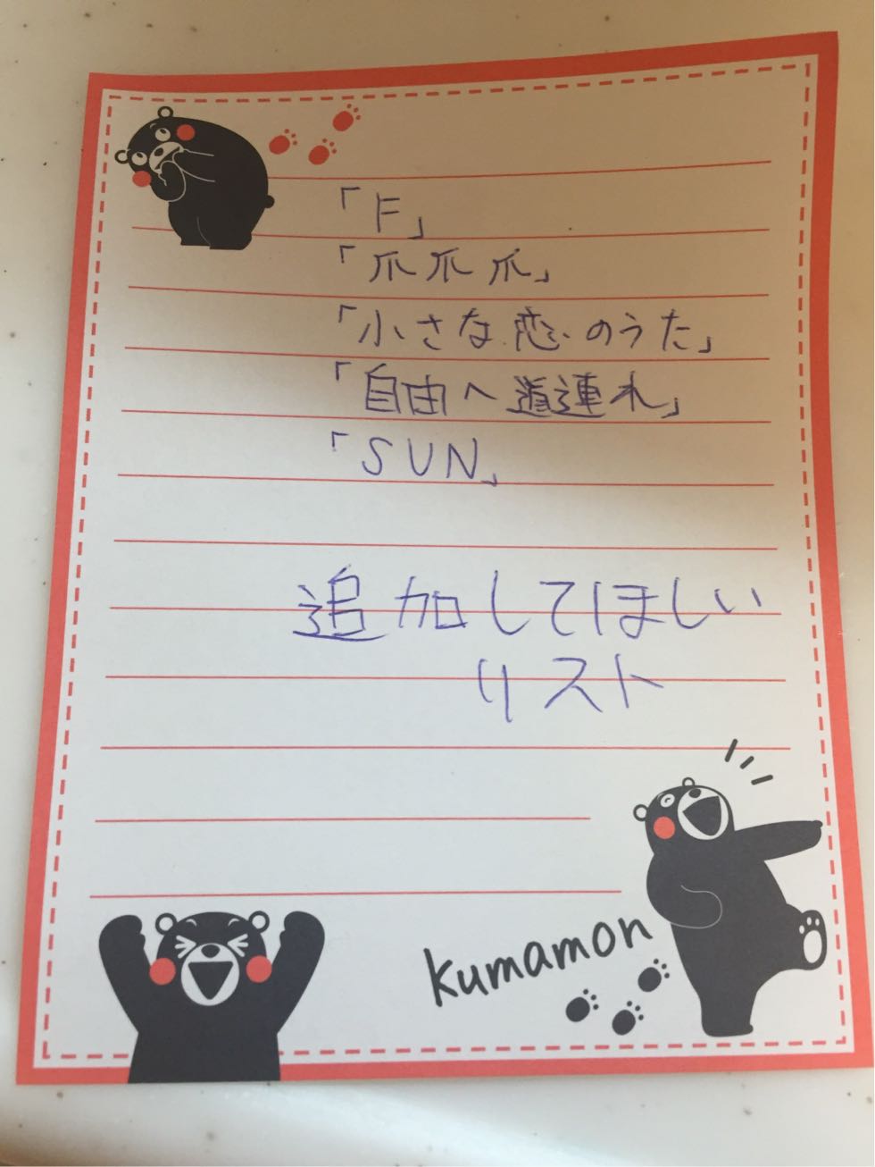 iPod に追加して欲しい曲リストでした。音楽を聴きながら通塾しているので、時々リクエストがあります。